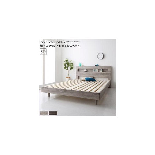 kag-55049 セミダブルベッド 一人暮らし SD フレーム ローベッド ロータイプ 低い 宮 棚 携帯 リモコン 収納 コンセント スマホ 充電 布団可 すのこ 通気性 カビ 脚 足