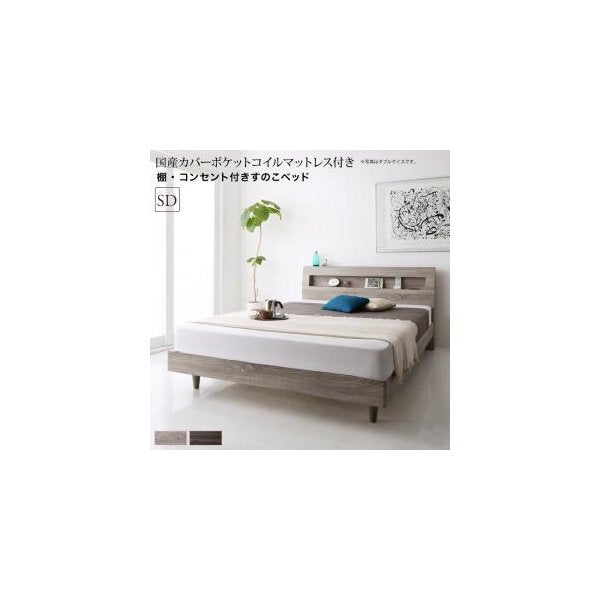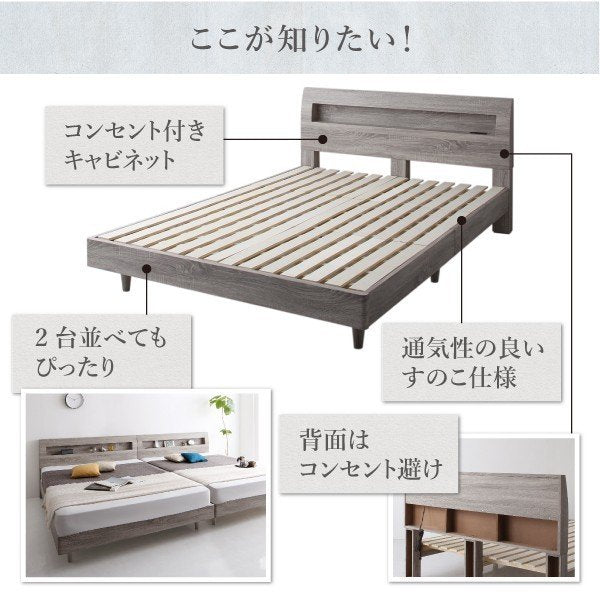 kag-55064 セミダブルベッド 一人暮らし マットレス付き ローベッド ロータイプ 低い 宮 棚 携帯 リモコン 収納 コンセント スマホ 充電 布団可 すのこ 通気性 カビ 脚 足