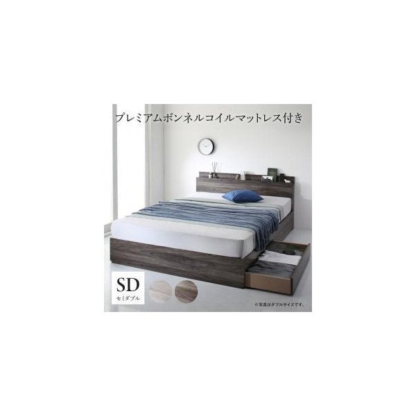 kag-55079 セミダブルベッド 一人暮らし SD マットレス付き チェストベッド ベッド下収納 引き出し 大容量 宮 棚 携帯 リモコン コンセント スマホ 充電 電気 ヴィンテージ