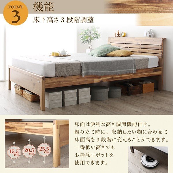 kag-55097 セミダブルベッド 一人 マットレス付 ベッド下 収納スペース 高い 床下 全面収納 高さ調節 ロー 低い 棚 携帯 コンセント スマホ 充電 脚 足 北欧 おしゃれ