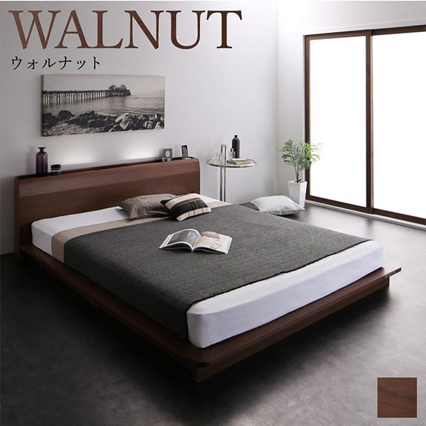 kag-55123 セミダブルベッド 一人暮らし マットレス付き ロー 低い 連結可 つなげる 宮 棚 携帯 収納 照明 ライト コンセント スマホ 充電 北欧 おしゃれ アンティーク