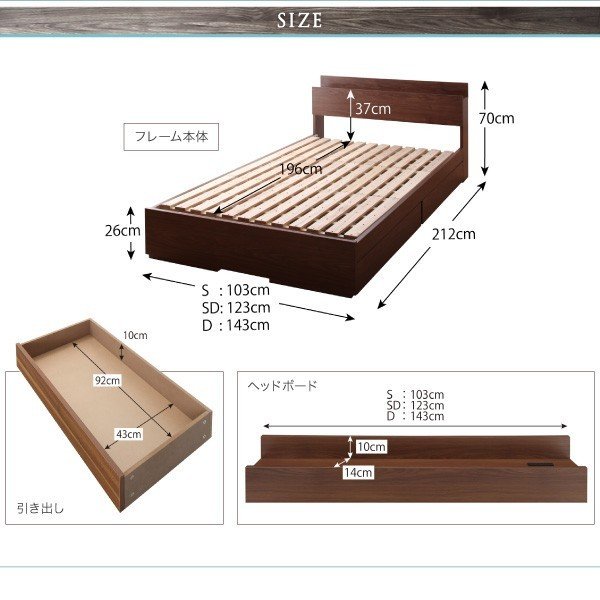 セミダブルベッド 一人暮らし SD フレームのみ チェストベッド ミドル ベッド下収納 引き出し付き 大容量 宮付き ヘッドボード 枕元 棚 ラック 携帯置き ティッシュ置き メガネ置き リモコン 頭上 収納 コンセント ゲーム ケーブル スマホ 充電 電気 布団 直置き マットレス不要 すのこ 通気性 除湿 カビ 北欧 おしゃれ モダン アンティーク