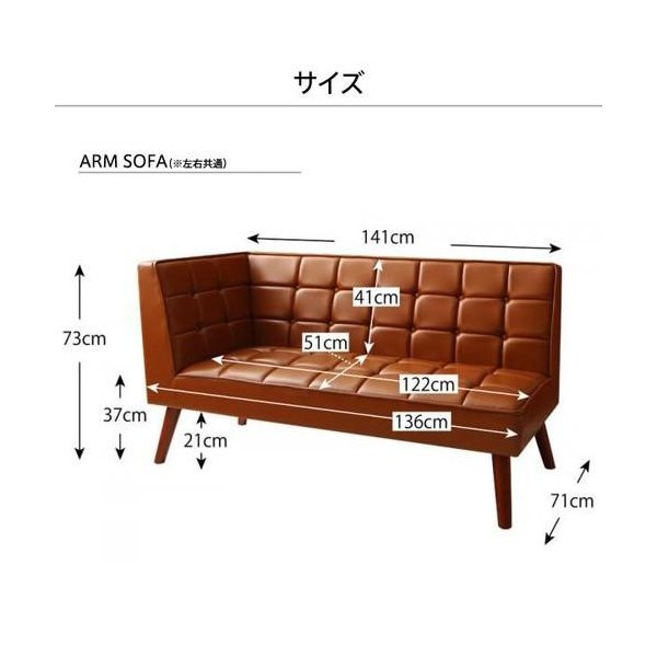 kag-30808 ソファー 2人掛け ベンチ 食事 ダイニングチェア 椅子 レザー 革 合皮 ( 片肘 左アーム ) 140cm ファミレス 脚 西海岸 ヴィンテージ レトロ ブルックリン サーフ