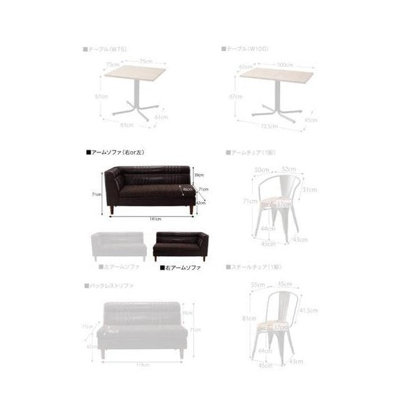 セット内容:テーブル(W100) 1、バックレストソファ 1、アームソファ 1