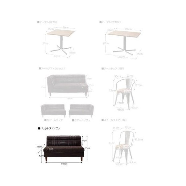 セット内容:テーブル(W100) 1、バックレストソファ 1、アームソファ 1