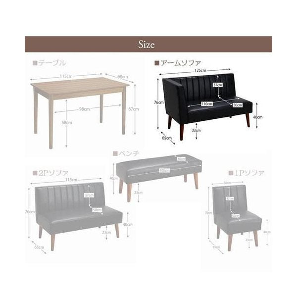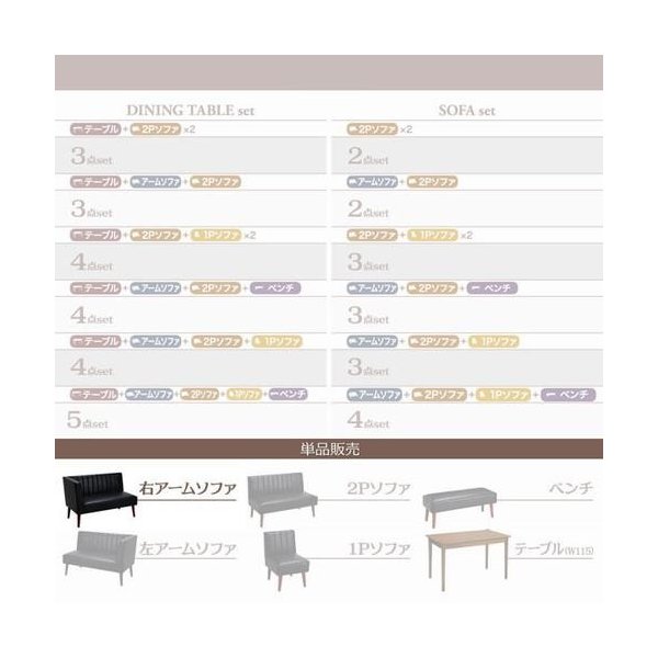 kag-31944 ソファー 2人掛け ベンチ 食事 ダイニングチェア 椅子 レザー 革 合皮 ( 片肘 右アーム ) 115cm ファミレス 脚 西海岸 ヴィンテージ レトロ ブルックリン サーフ