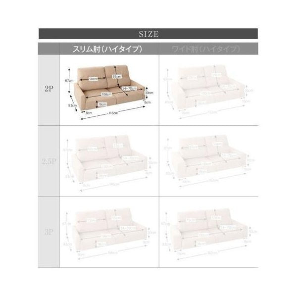 2.5P:(ワイド肘/スリム肘・ロータイプ/ハイタイプ)