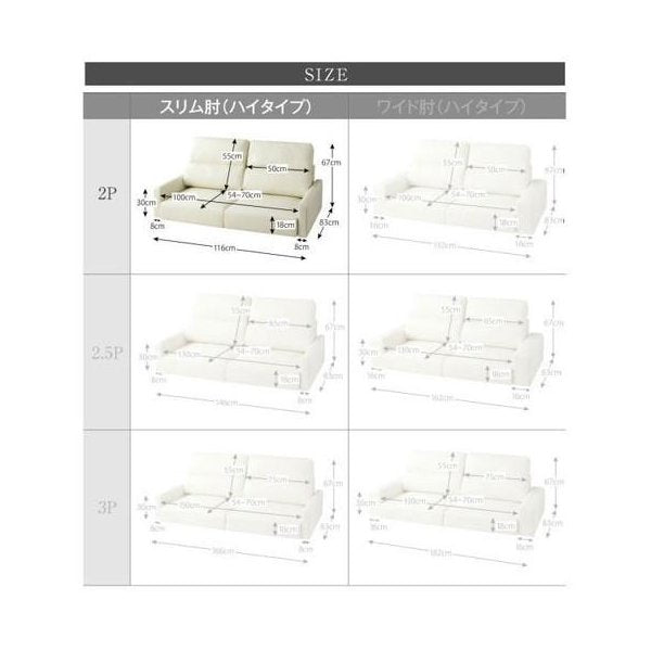 2.5P: (ワイド肘/スリム肘・ロータイプ/ハイタイプ)