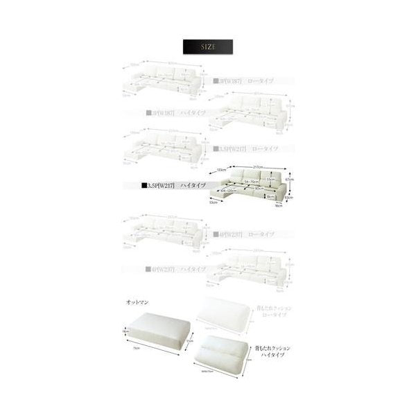 kag-34441 コーナーソファー L字 おしゃれ 3.5人掛け 3.5P オットマン レザー カウチソファー (ソファ+足置ハイタイプ3.5P)