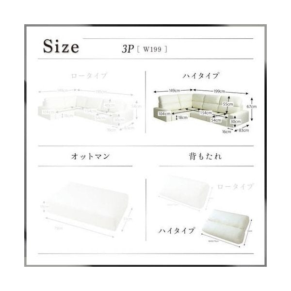 (約)横幅199(座面幅154) 奥行149 高さ54/67 cm