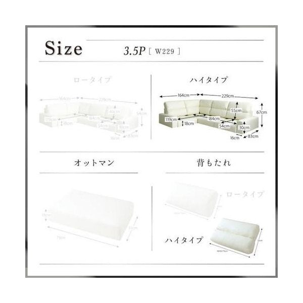 kag-34448 コーナーソファー ローソファー 座椅子 低い こたつ L字 l型 3.5人掛け 大人数 レザー 革 合皮 カウチ ( ハイバック ) モダン スタイリッシュ デザイナーズ 高級