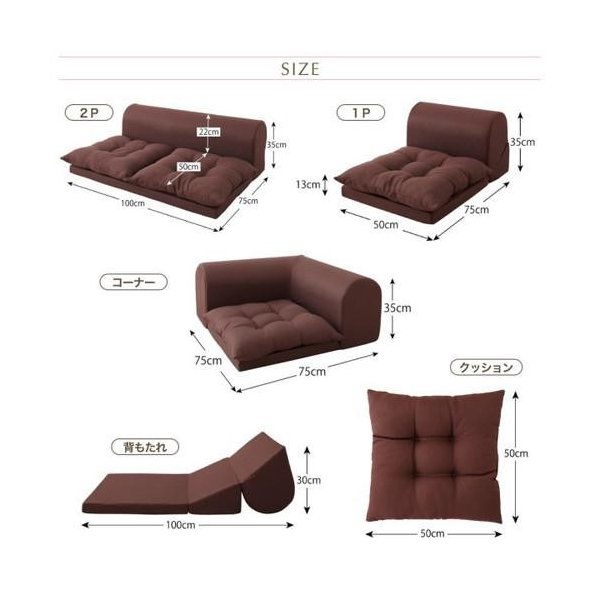2P:(約)幅100 奥行き75 高さ35cm