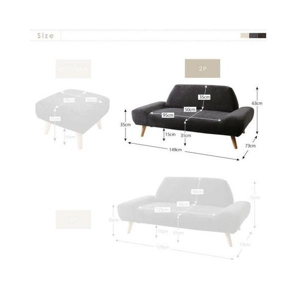 2人掛け:(約)幅149(座面幅95) 奥行き73(座面奥行50) 高さ63(座面高31)cm
