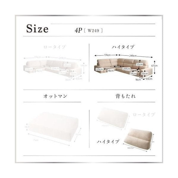 kag-34657 コーナーソファー ローソファー 座椅子 低い こたつ L字 l型 4人掛け 大人数 カウチ ( ハイバック ) 布張り モダン クール スタイリッシュ デザイナーズ 高級