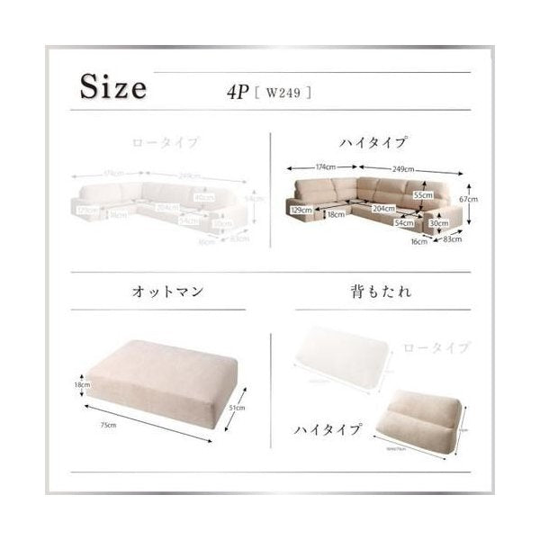 kag-34663 コーナーソファー コーナーソファ L字 おしゃれ 北欧 4人掛け 四人掛け 4P オットマン付き スツール 足置き 椅子 (+足置ハイ 4P)