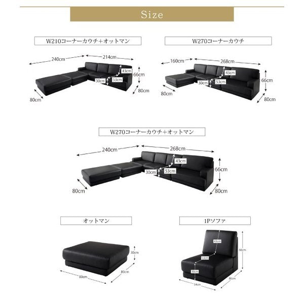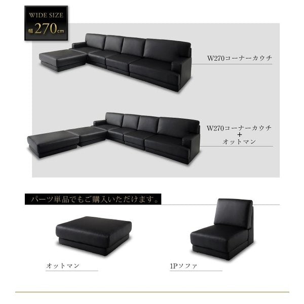 kag-34702 コーナーソファー L字 おしゃれ 3人掛け 三人掛け オットマン付き 足置き 椅子 レザーソファー (+足置3P 幅210)