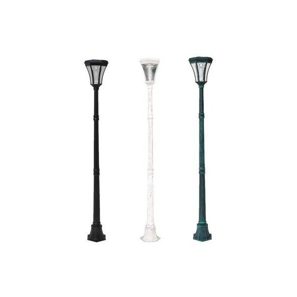 ヨーロッパにある街灯のような美しいデザインとカラーを揃えた本格派ソーラーライト。天面の太陽光パネルで日中に充電し、あたりが暗くなるとぱっと自動点灯。LEDライト19灯のほのかな灯りが、玄関先やお庭をやさしく照らします。ソーラー充電式なので電気代0円でとっても経済的。電気を使わないので、面倒な配線もなく設置も簡単。脚は土に長さ約30cmのくい3本を打ち込んで固定します。