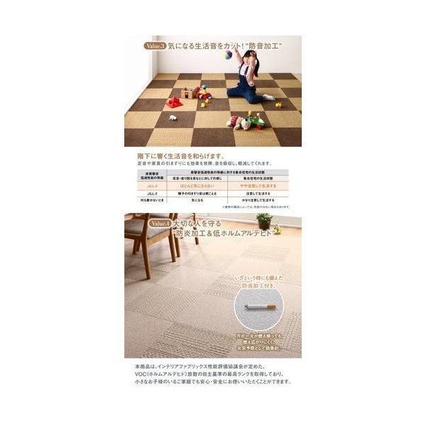 kag-33330 タイルカーペット ジョイント ラグ 洗える 絨毯 厚手 マット 夏 ペット 犬 280×360 6畳 滑り止め 吸着 ずれない 大きい ( 63枚 大量 ) モダン 防音 リブニット