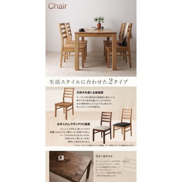 セット内容:テーブル(W135) 1、チェア(板座面4脚orPVC座面4脚or板座面2脚+PVC座面2脚)