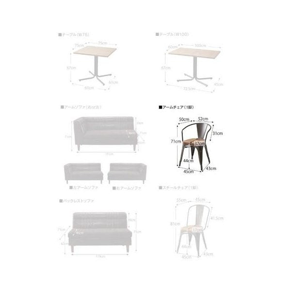 セット内容:テーブル(W100) 1、バックレストソファ 1、アームソファ 1