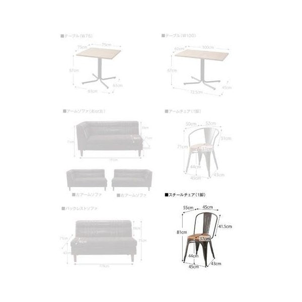 セット内容:テーブル(W100) 1、バックレストソファ 1、アームソファ 1