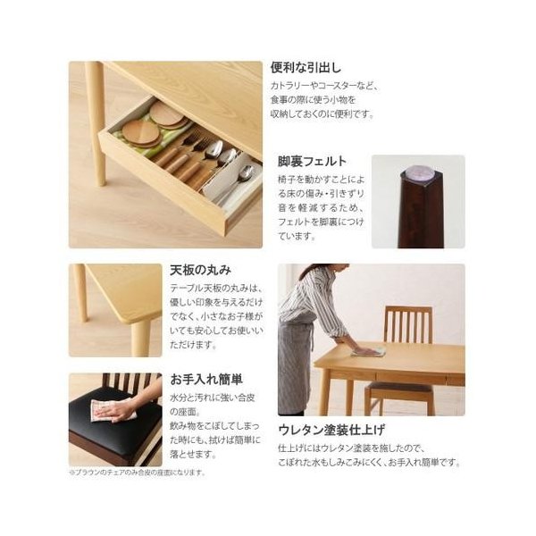 kag-31027 ダイニングテーブルセット 4人用 椅子 おしゃれ 安い 北欧 食卓 5点 ( 机+チェア4脚 ) ブラウン 幅115 デザイナーズ クール スタイリッシュ 引き出し 収納