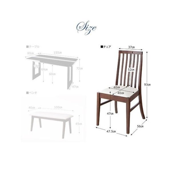 セット内容:テーブル(W150) 1、チェア 2、ベンチ 1