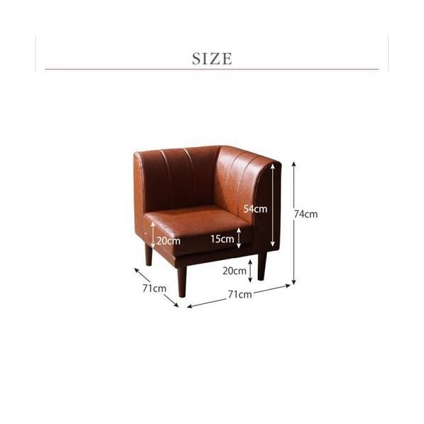 kag-31780 コーナー部単品 ソファー 1人掛け 一人暮らし コンパクト ダイニング チェア 食事 椅子 レザー 革 合皮 70cm 高さ調整 脚 西海岸 ヴィンテージ レトロ サーフ