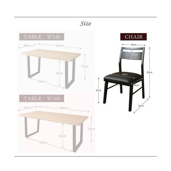 【セット内容】テーブル(W140またはW180) 1、チェア 4