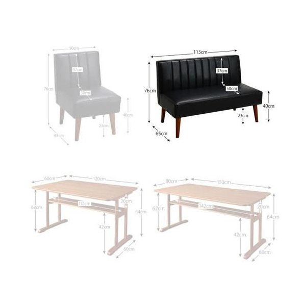 kag-32031 ソファー 2人掛け ベンチ 食事 ダイニングチェア 椅子 レザー 革 合皮 アンティーク 115cm ファミレス 脚 西海岸 ヴィンテージ レトロ ブルックリン サーフ