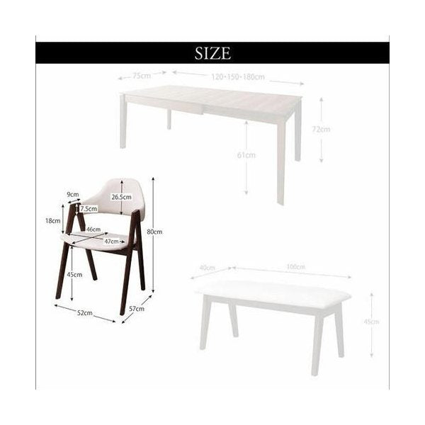 セット内容:テーブル 1、チェア 2、ベンチ 1