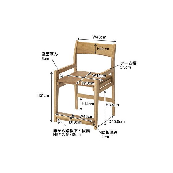 サイズ(cm) 幅48 奥行55 高さ75 座面高44/47/50/53