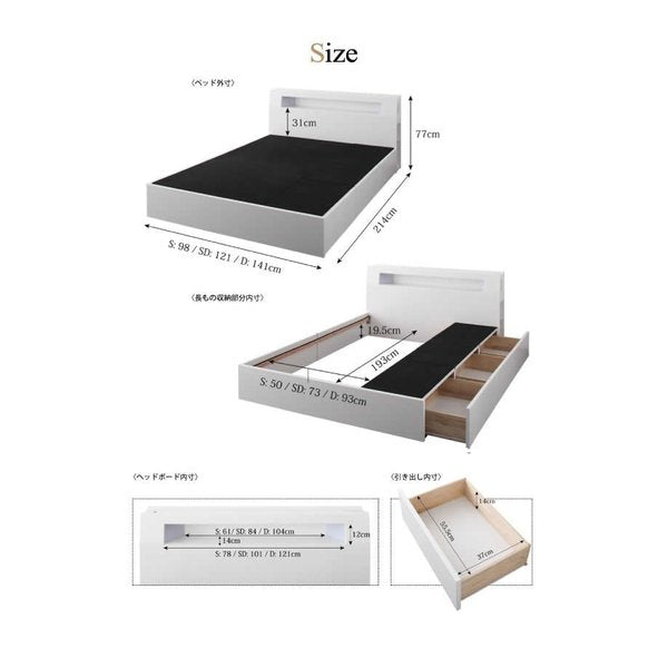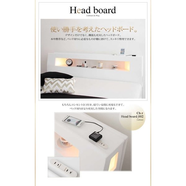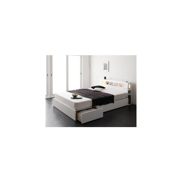 kag-4121 ダブル ベッド チェスト 引き出し 大容量 宮 棚 スマホ ラック ライト コンセント 充電 フレーム 高級 アンティーク 姫系 かわいい 照明 PポケットCマットレス付