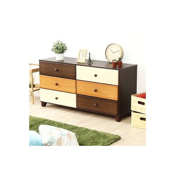 ブラウンを基調とした天然木ワイドチェスト 3段 幅117cm 日本製・完成品| type1