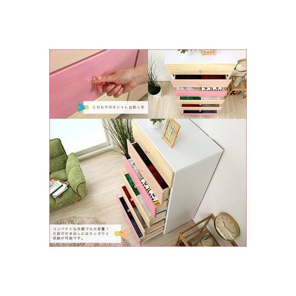 kag-27122 チェスト タンス 子供部屋 姫系 北欧 アンティーク 木製チェスト 6段 幅60 天然木 桐 整理タンス 洋服タンス