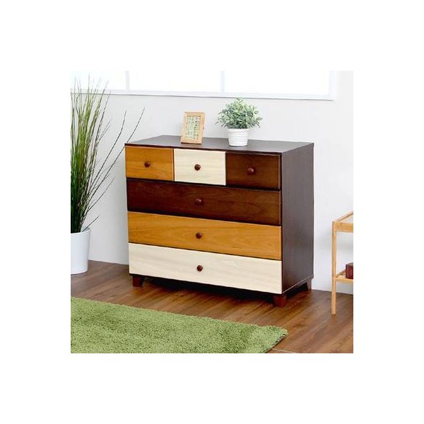ブラウンを基調とした天然木ローチェスト 4段 幅90cm 日本製・完成品| type1