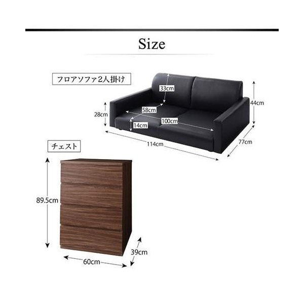 kag-35311 ソファー 2人掛け おしゃれ + チェスト タンス 洋服タンス 収納チェスト サイドボード レザー アジアン (ソファ+チェスト)2P)