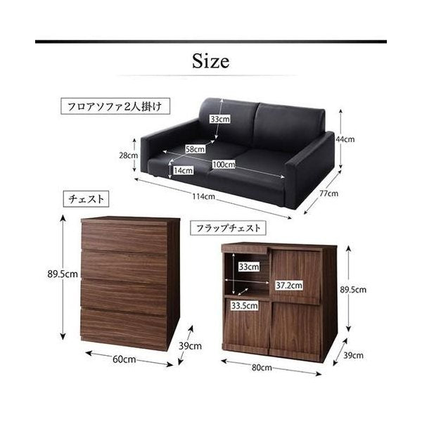 kag-35319 ソファー 2人掛け おしゃれ + チェスト タンス 洋服タンス 収納チェスト 本 棚 レザー アジアン (2Pソファ+チェスト+フラップ扉)
