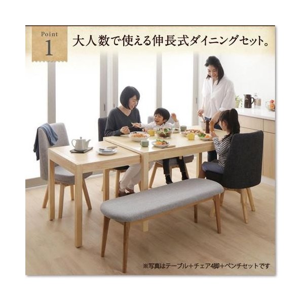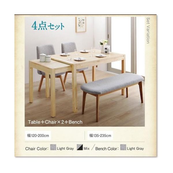 【セット内容】テーブル(W120-200/W135-235)、チェア 4、ベンチ 1