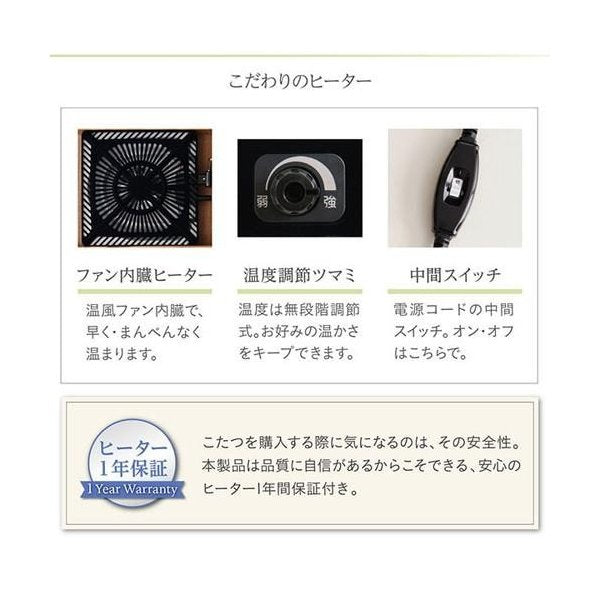 ご利用可能なこたつ机天板サイズ:幅90~120 奥行60~80cm