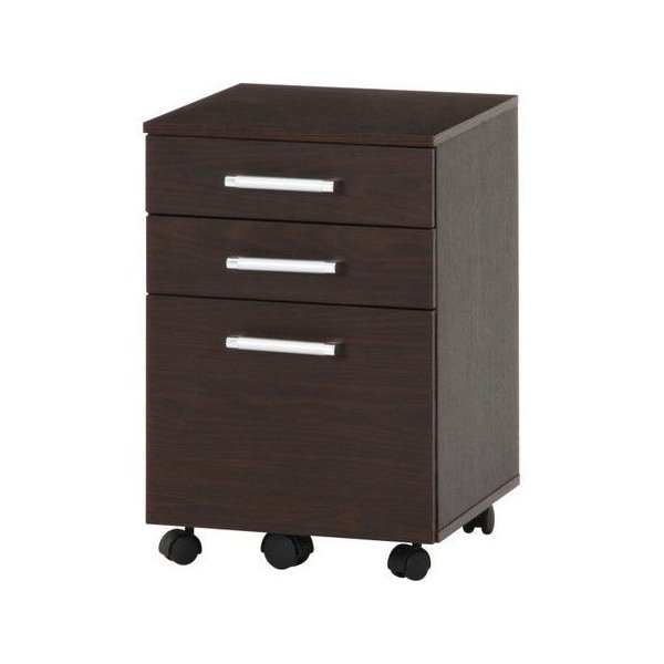 kag-26087 デスク ワゴン 脇机 袖机 a4 サイド キャビネット 収納 書類 ファイル オフィス チェスト ダークブラウン