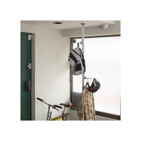 床も天井も傷めることなく、つっぱるだけで簡単に設置出来ます。付属のフックで玄関やお部屋で簡単に物掛けが可能。使い方が面白いですよ。