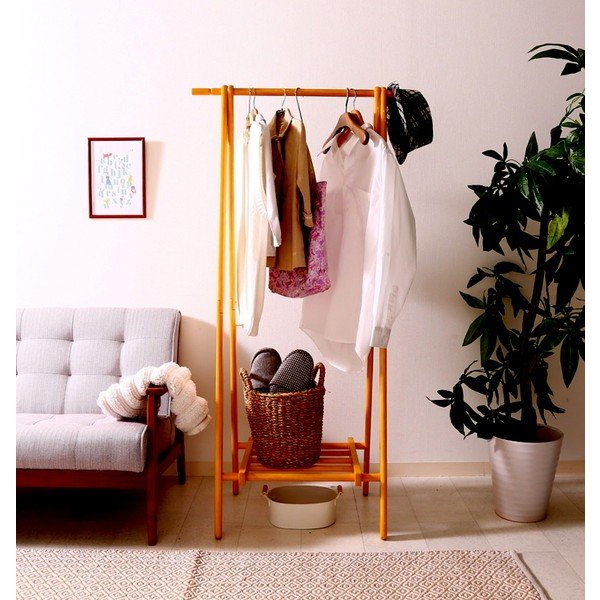 kag-25719 ハンガーラック 頑丈 パイプハンガー 洋服 掛け 低い コートハンガー ポールハンガー 押入れ クローゼット 衣類 ナチュラル
