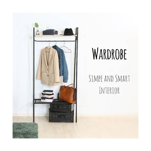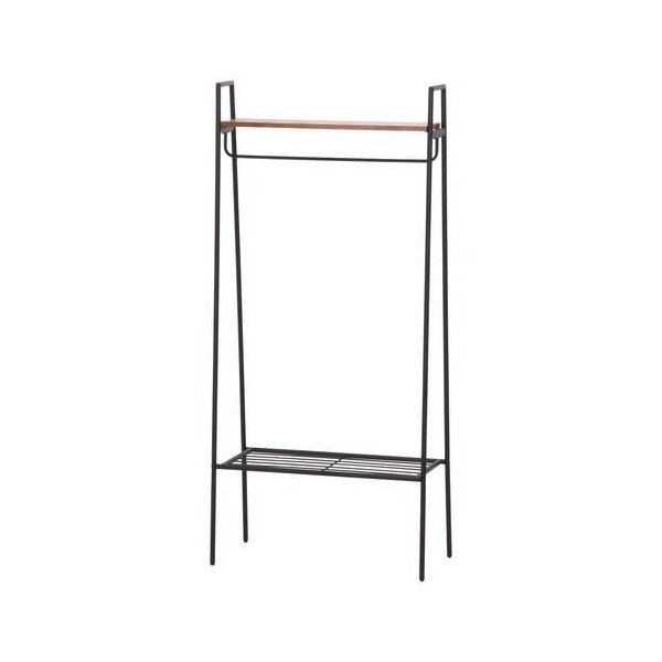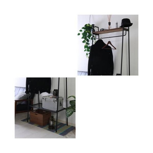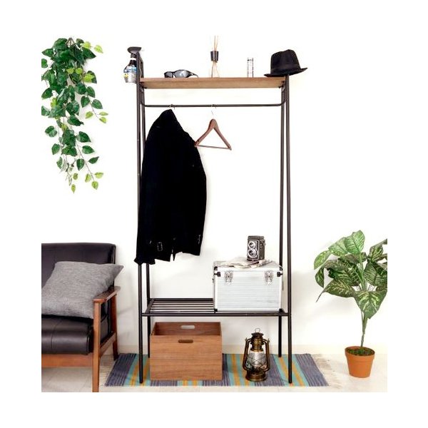 kag-25952 ハンガーラック おしゃれ 頑丈 丈夫 洋服掛け パイプハンガー コートハンガー シングル スリム 棚 収納付き ヴィンテージ アイアン 玄関 ブラック 黒 80