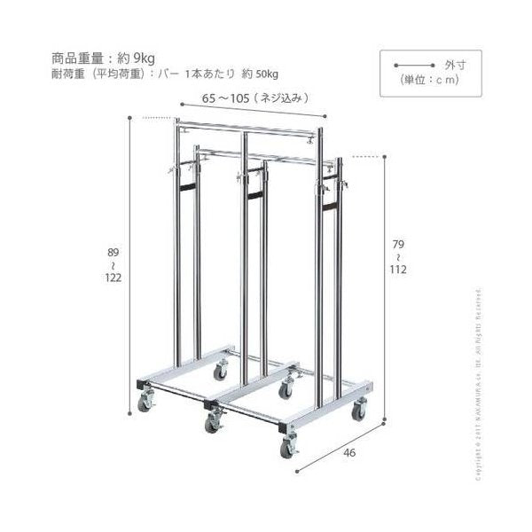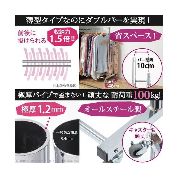 kag-36086 ハンガーラック おしゃれ 頑丈 押し入れ クローゼット 2段 ダブル 2連 スリム キャスター コンパクト ミニ 伸縮 大容量 ワイド 低い ロータイプ 70 75 80 85 100