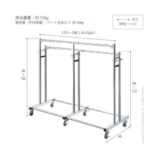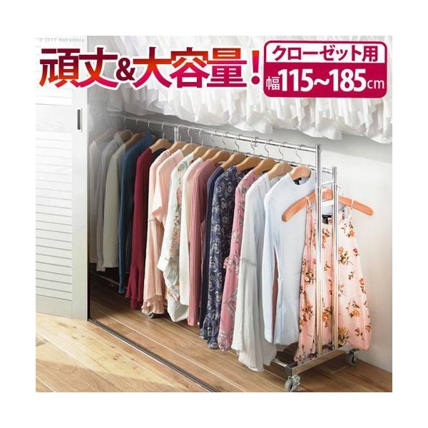 kag-36087 ハンガーラック おしゃれ 頑丈 押し入れ クローゼット 2段 ダブル 2連 子供 スリム キャスター コンパクト ミニ 伸縮 大容量 ワイド 低い ロータイプ 120 180