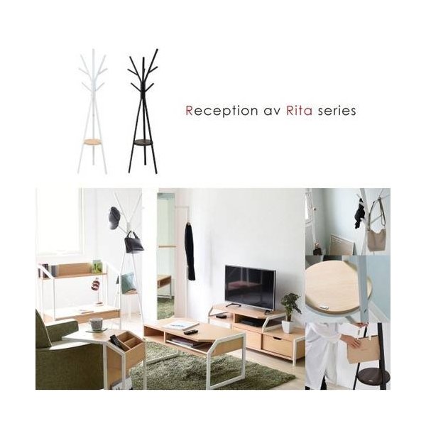 熱や水に強く、傷がつきにくいので、メンテナンスが容易です。スチールは鋭角な部分を排除し、やさしい作りになっています。真ん中に棚板を設置し、脚元にも収納スペースを確保しました。ハンガー部は1本長くアシンメトリなデザインになっています。お部屋に戻った際のコートや、鞄掛けに。デザインが、お部屋のアクセントになります。