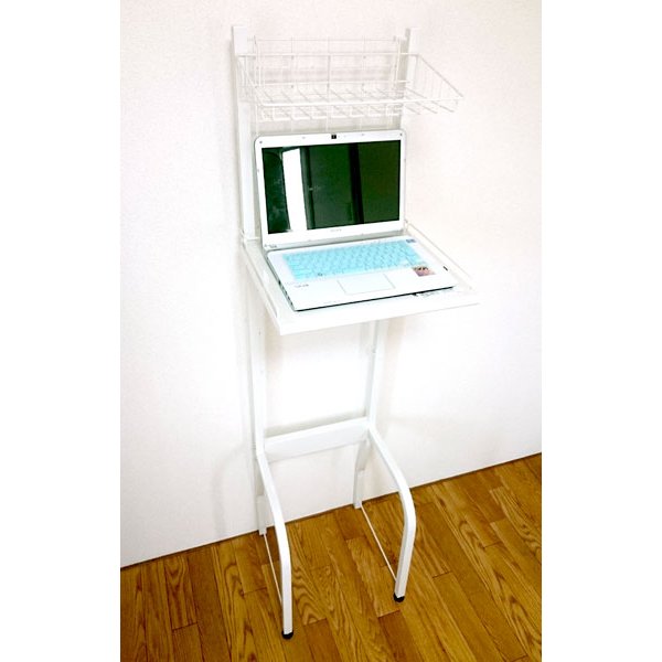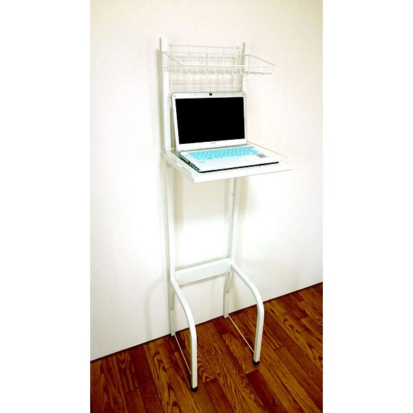 abt-9040 スタンディングデスク 昇降式 ノート パソコンデスク コンパクト スリム ハイタイプ ホワイト 安い 高さ110 95 80 70 奥行40 小さめ 省スペース 棚 白 机 収納