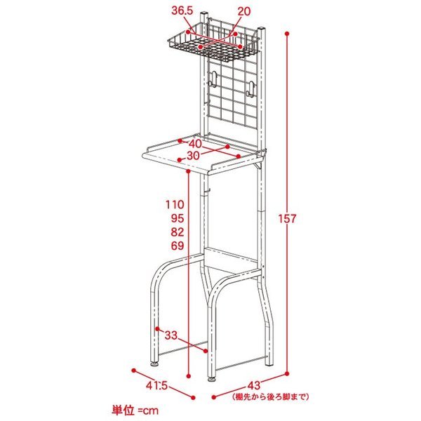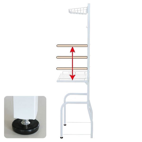 熱、汚れに強いスチール製です。バスケットの位置や棚板の高さも調整可能で使いやすい仕様になっています。