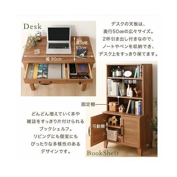 kag-35391 パソコンデスク PCデスク おしゃれ 北欧 シンプル オフィスデスク 収納 本棚 ラック 棚付き (デスク+ブックシェルフ)